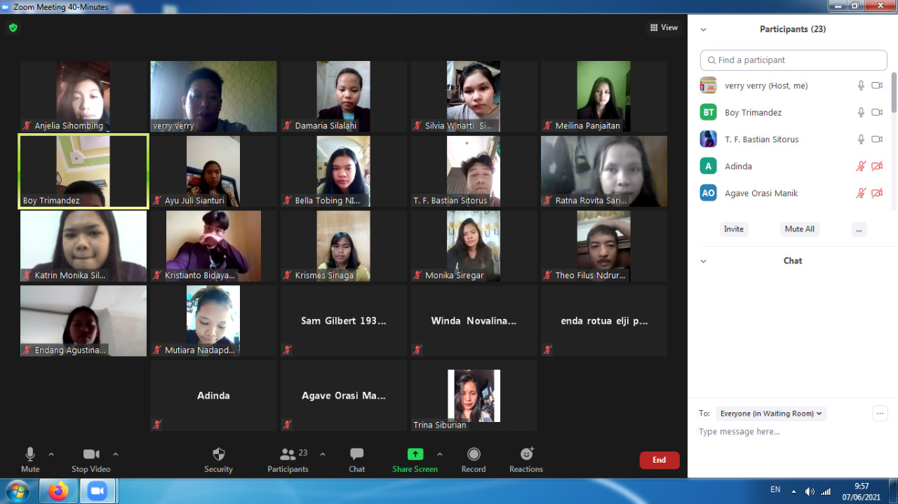 ZOOM MEETING SOREA, SORE B, PAGI H, PAGI G, PAGI I, PAGI UNGGULAN